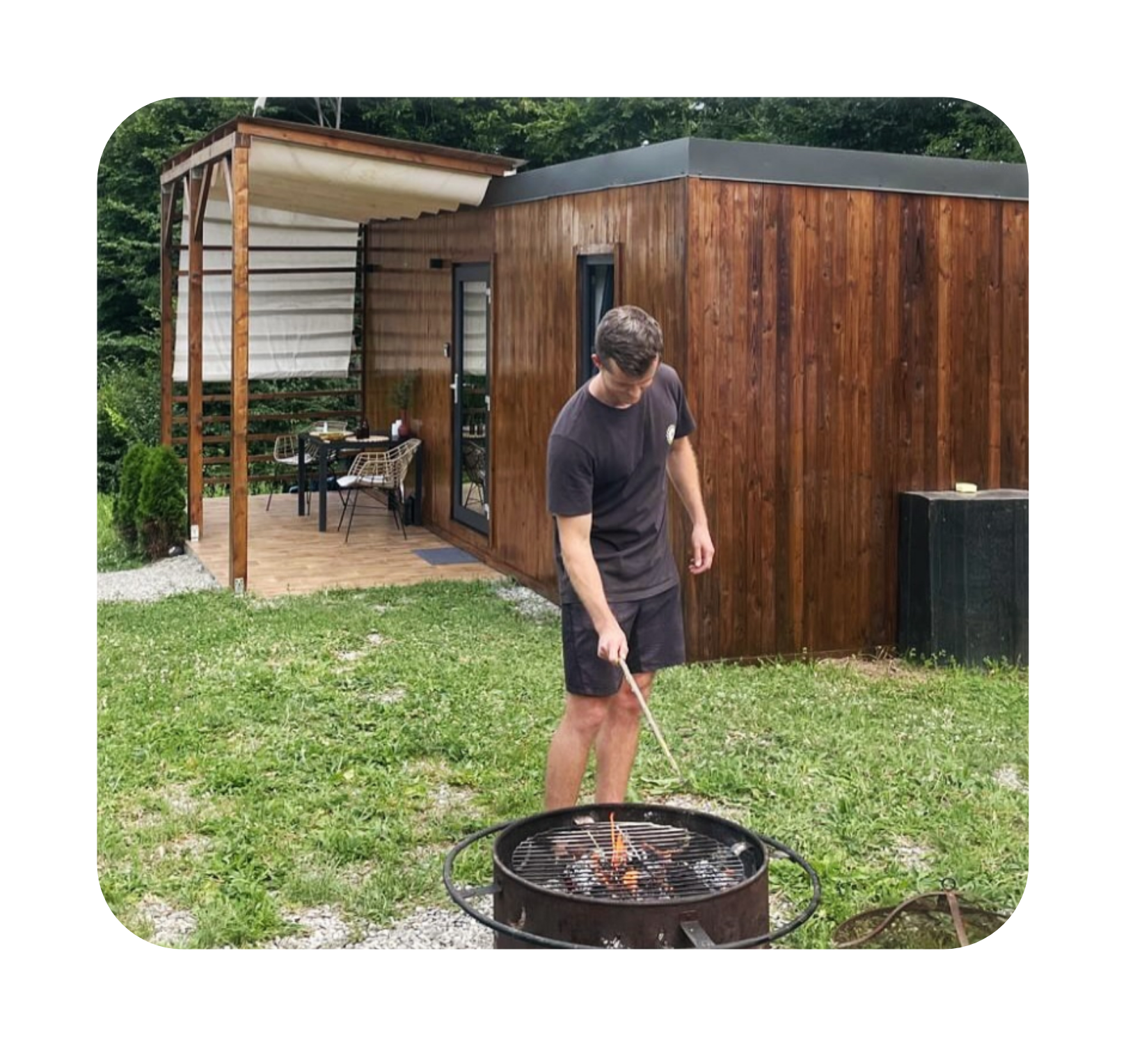 “It’s our second time at tiny heaven and now we also came prepared with some meat, veggies and potatoes for a really delicious barbecue. We fell in love with this quiet and private place 🤍”