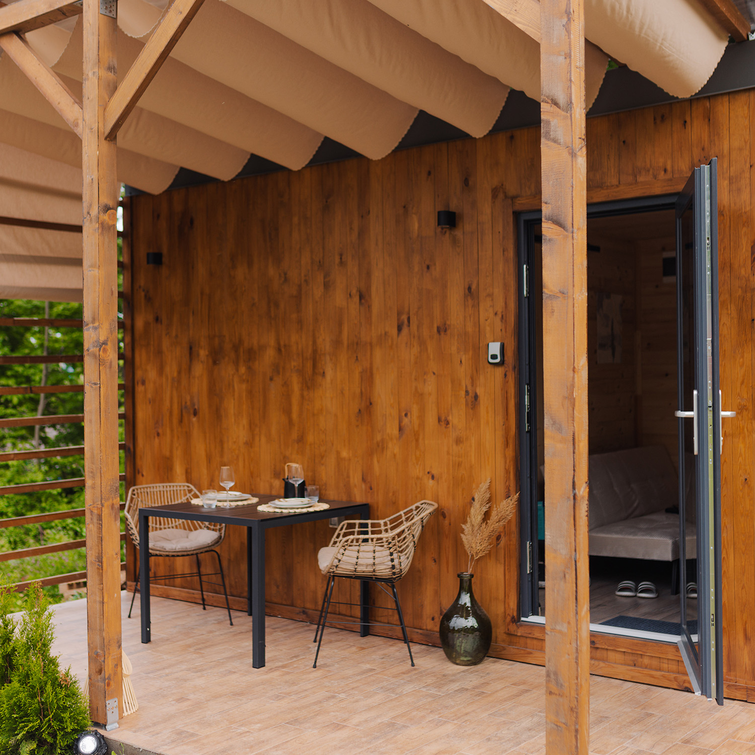 Bucură-te de cabana ta eco-friendly, cu priveliști spectaculoase, o bucătărie complet echipată și chiar un proiector pentru serile de film în intimitate. Seara, aprinde grătarul și creează amintiri sub cerul plin de stele.